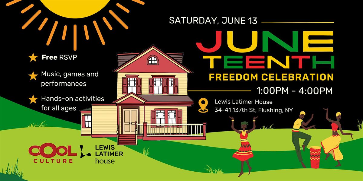 What does community building look like to you? Join the Lewis Latimer House and Cool Culture for a Juneteenth Family Festival in celebration of Black history, citizenship, innovation, and community activism. Families will have the opportunity to: