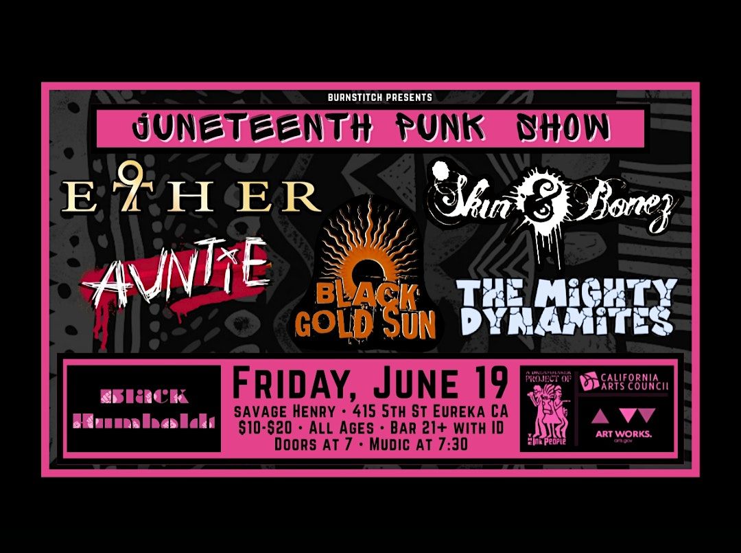 ETHER 9 (Atlanta GA), Skin & Bonez (Bay Area), Black Gold Sun (Bay Area), The Mighty Dynamites (Humboldt County), Auntie (Humboldt County)
