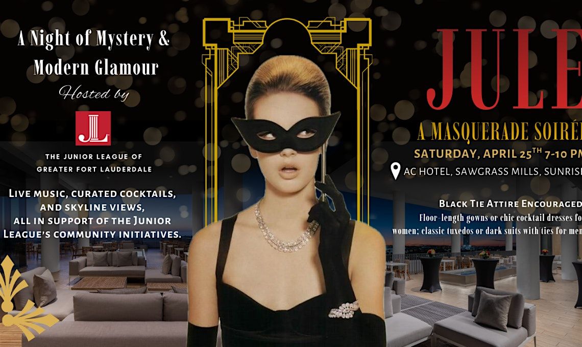 Join us for Jule, our signature Junior League gala event to celebrate a year of service, leadership, and advocacy! An Evening of Elegance, Mystery & Impact Awaits Live Music, handcrafted cocktails, delicious appetizers all while overlooking city lights of Fort Lauderdale from a beautiful rooftop space. We have made it easy to attend with multiple ticket options, whether you are coming solo, with friends or ready to go all out with a VIP table experience. The best part is your ticket does more than get you through the door. Over the past two decades, the Junior League has raised over one million dollars through events like this to directly support our community! So come! Have a blast, all while giving back all at the same time! See you there!!