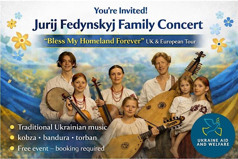 Join us in Bristol for a special концерт by Jurij Fedynskyi and his family, presented as part of their European tour “Bless My Homeland Forever.”