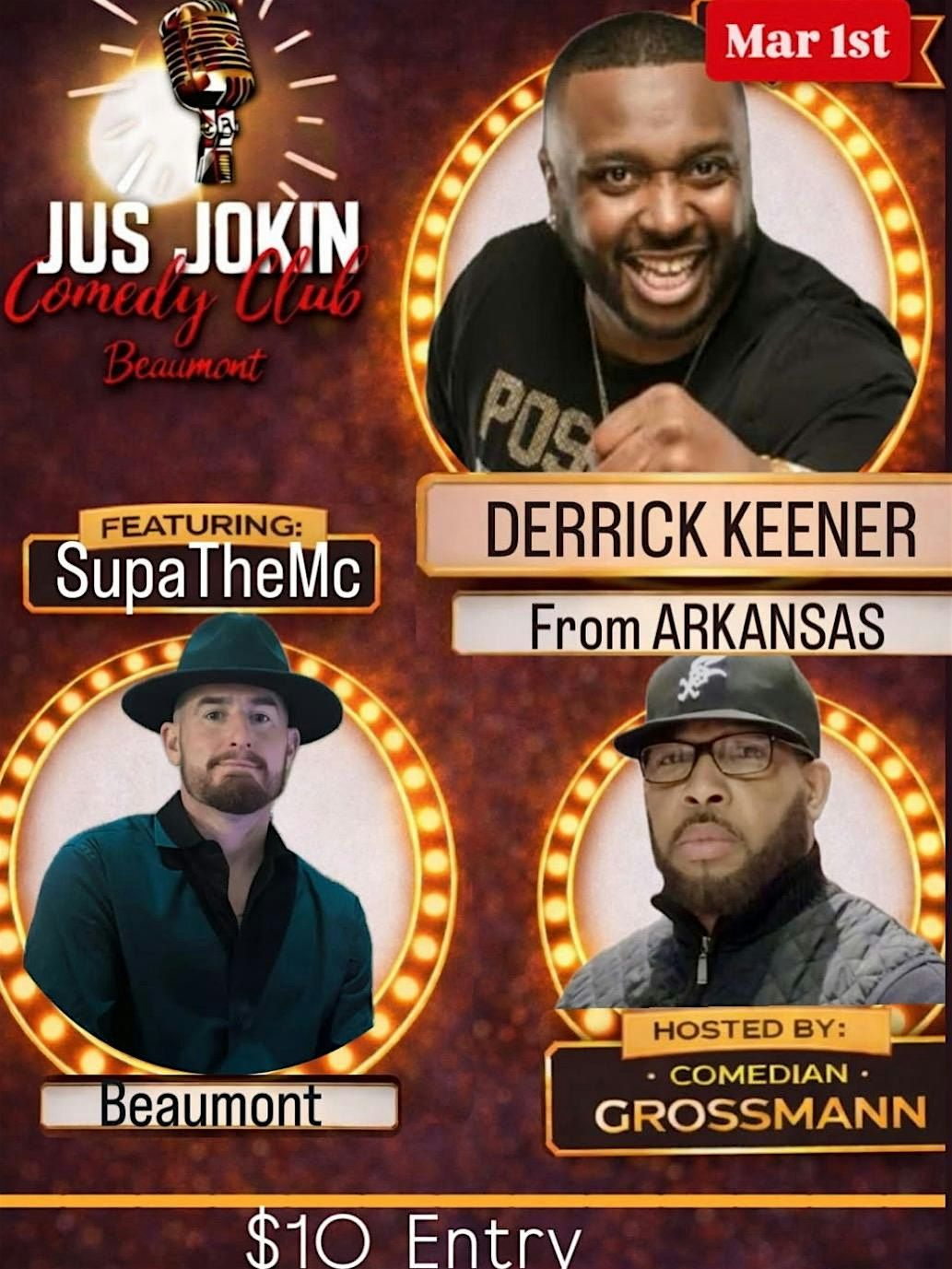 Join us for an unforgettable in-person comedy show that'll have you laughing all night long. Jus Jokin Comedy brings the best local comics to the stage, delivering fresh jokes and hilarious stories. Hosted by Comedian Terry Grossman.Grab your friends, come enjoy some great vibes, and let the good times roll. Don’t miss out on the fun—this is where the laughs happen!Tickets & Pricing
