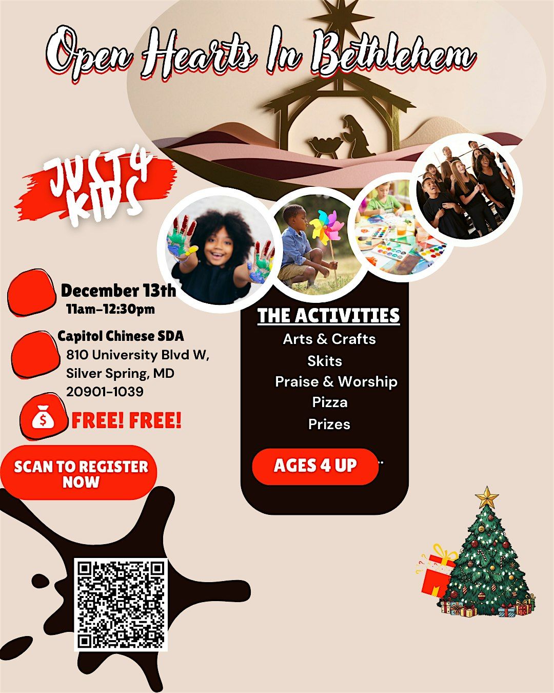 Join the Capital Chinese Seventh-Day Adventist Church for a special program designed just for you: "Open Hearts in Bethlehem."