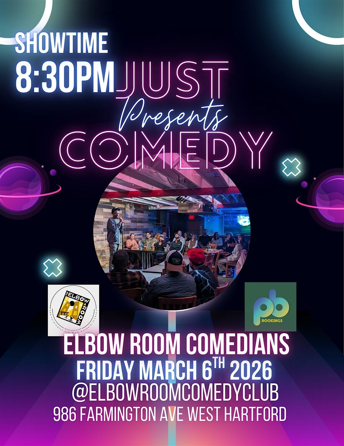 Just Comedy Show" is a stand-up comedy showcase at the Elbow Room Comedy Club in West Hartford CT.