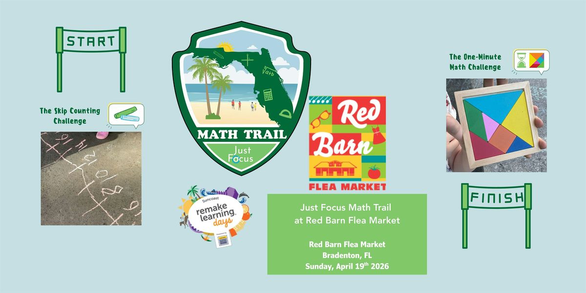 Join us for a fun, hands-on math experience as the Just Focus Math Trail pops up at Red Barn Flea Market! Become a Math Trailblazer and tackle interactive challenges like our minute math matching game, measurement station, and estimation contest. Sharpen your problem-solving skills, boost your math vocabulary, and earn a prize for participating. This family-friendly event engages learners of all ages and levels, with Spanish materials available.