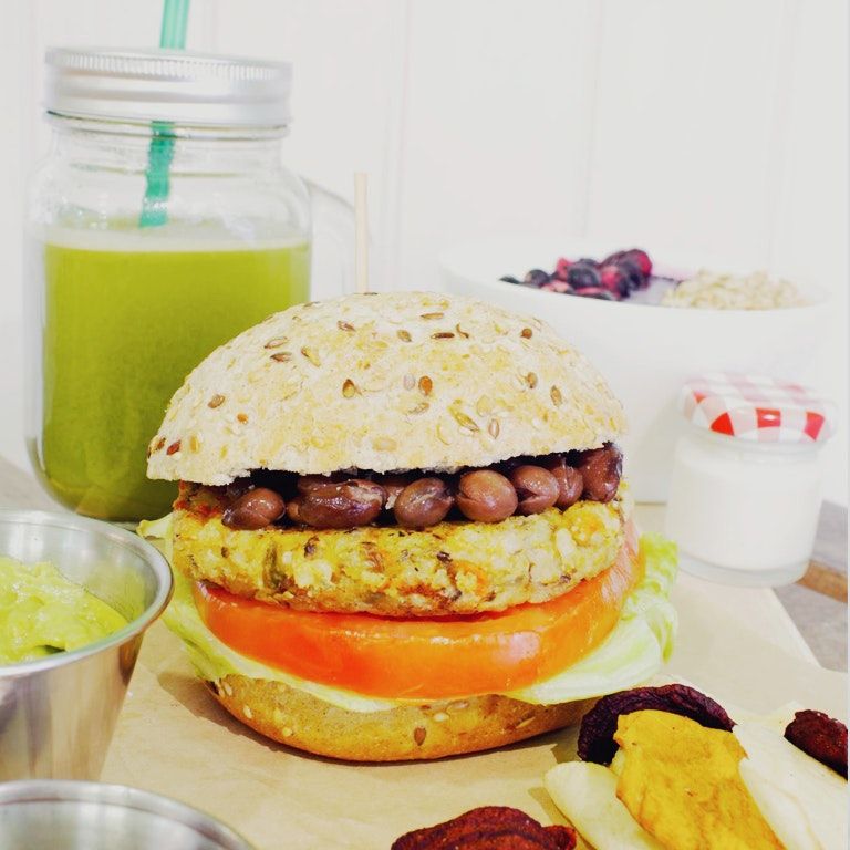 ? Lugar: Just Good Menú Hamburguesas, a elegir: Chicken Burger: pan, hamburguesa de pollo teriyaki, cebolla caramelizada, queso de cabra, lechuga, tomate y salsa de miel y mostaza Classic Burger: pan, hamburguesa de pollo teriyaki, queso gouda, tomate, lechuga, pepinillo, cebolla roja, kétchup y mostaza Falafel Burger: pan, hamburguesa de falafel, lechuga, tomate, cebolla roja, zanahoria y salsa yogur Vegetal Burger: pan, hamburguesa de calabacín y puerro, calabacín asado, tomate, puerro, mezclum y salsa de mostaza dulce Beef Burger: pan, hamburguesa de ternera, tomate, queso de cabra, mezclum, bacon de pavo y salsa black label Veggie Burger: pan, hamburguesa de berenjena, guacamole, lechuga, tomate deshidratado, frijoles y salsa de chili dulce Bebida classic, a escoger entre: Agua con gas Coca-Cola light o zero Fanta naranja Nestea sin azúcar Aquarius zero o vive Río (refresco de frutas) Cerveza Cruzcampo Tinto de verano Agua mineral