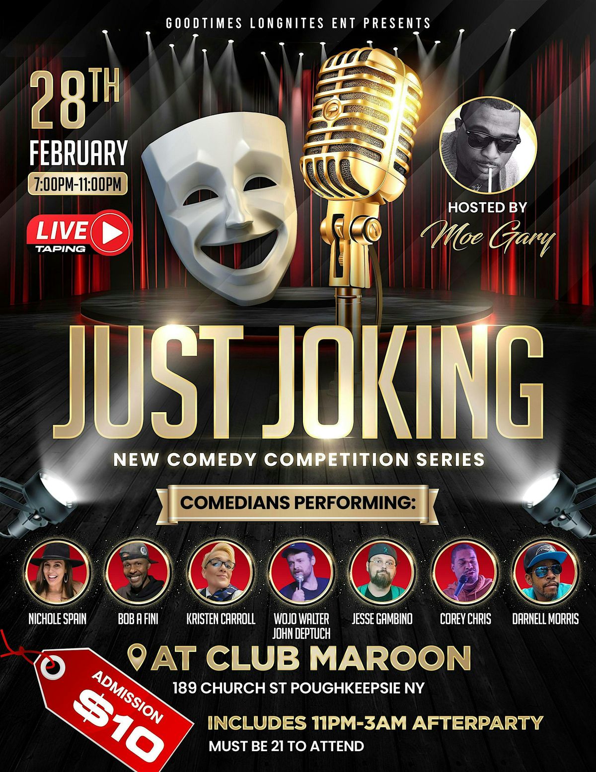 Get ready to laugh your socks off with the hilarious comedians at the live taping of Just Joking Comedy Competition Episode 1!About this Event