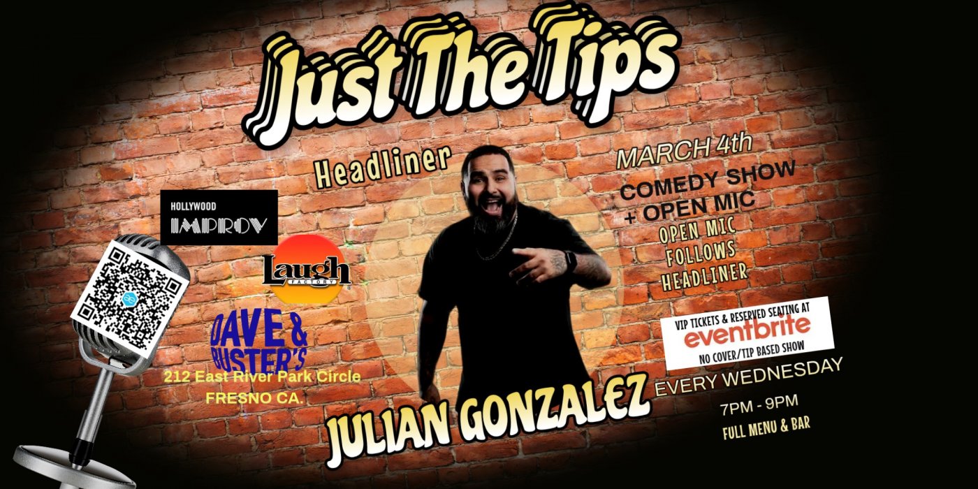 Get ready to laugh your socks off at Dave & Buster's Fresno! Join us on March 4, 2026 at 7:00 PM (Pacific Time) for a night of hilarious comedy with the talented Julian Gonzalez.