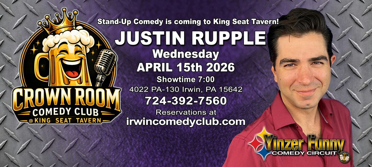 Join us for a night of laughter and entertainment with the SUPER TALENTED Justin Rupple at Kings Seat Tavern with OPENINING NIGHT of the Crown ROOM COMEDY CLUB. Get ready to laugh and party with one of Americas Got Talent's Best impressionest in years!