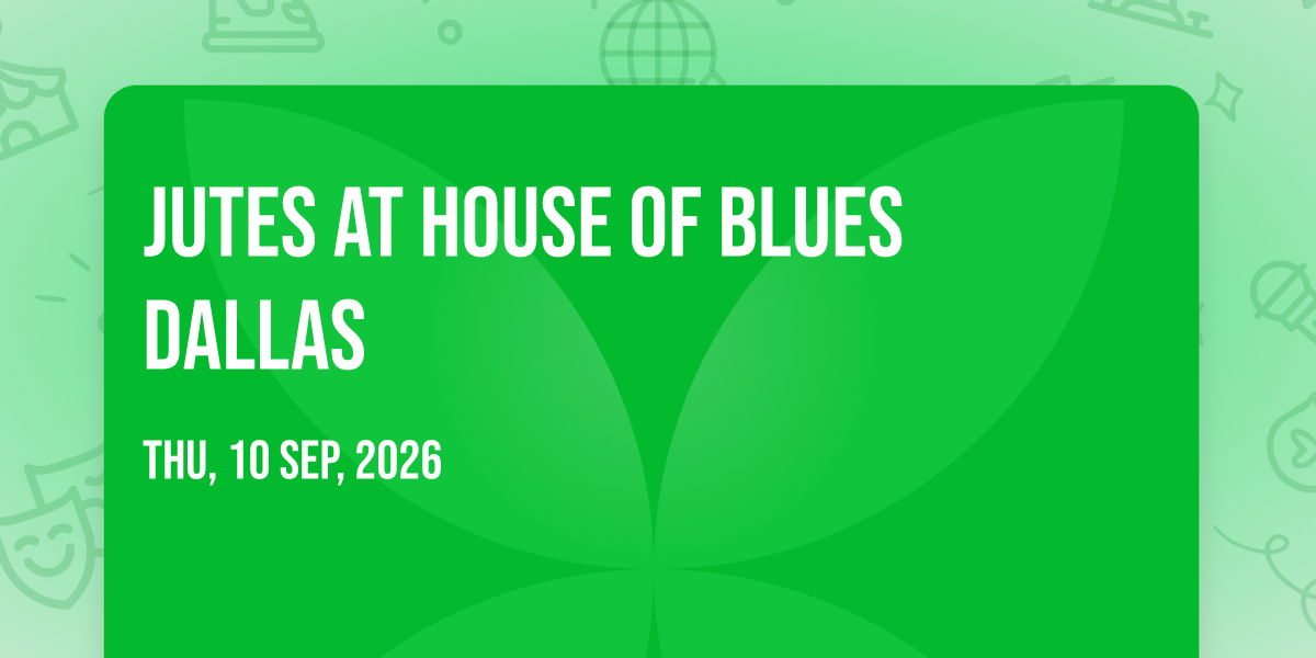 ✨ Enter a world of endless possibilities at Jutes at House of Blues Dallas, where every moment tells a story! 🏛️ The stunning House of Blues Dallas in vibrant Dallas, TX transforms into a realm of wonder on September 10th, 2026 at 06:00 PM. 🌟 They have crafted an experience that goes beyond the ordinary, combining elements of surprise, delight, and pure entertainment. Every detail has been thoughtfully considered to ensure your journey with us is nothing short of extraordinary. 🎯 Join fellow adventure seekers and memory makers in this celebration of imagination and innovation. 🎊 Reserve your spot today and be part of something truly special!