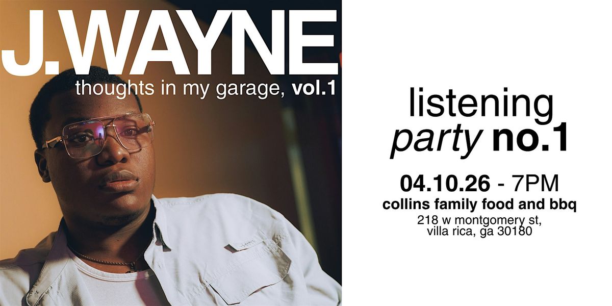 Come hang out at Collins Family Food and BBQ on April 10, 2026 at 7:00 PM (Eastern Time) for an exclusive listening party! Dive into the vibes of J.WAYNE's latest project, thoughts in my garage, vol. 1. Itโs the perfect chance to chill, enjoy some great tunes, and soak up the good atmosphere with fellow music lovers. Donโt miss out on this in-person event!