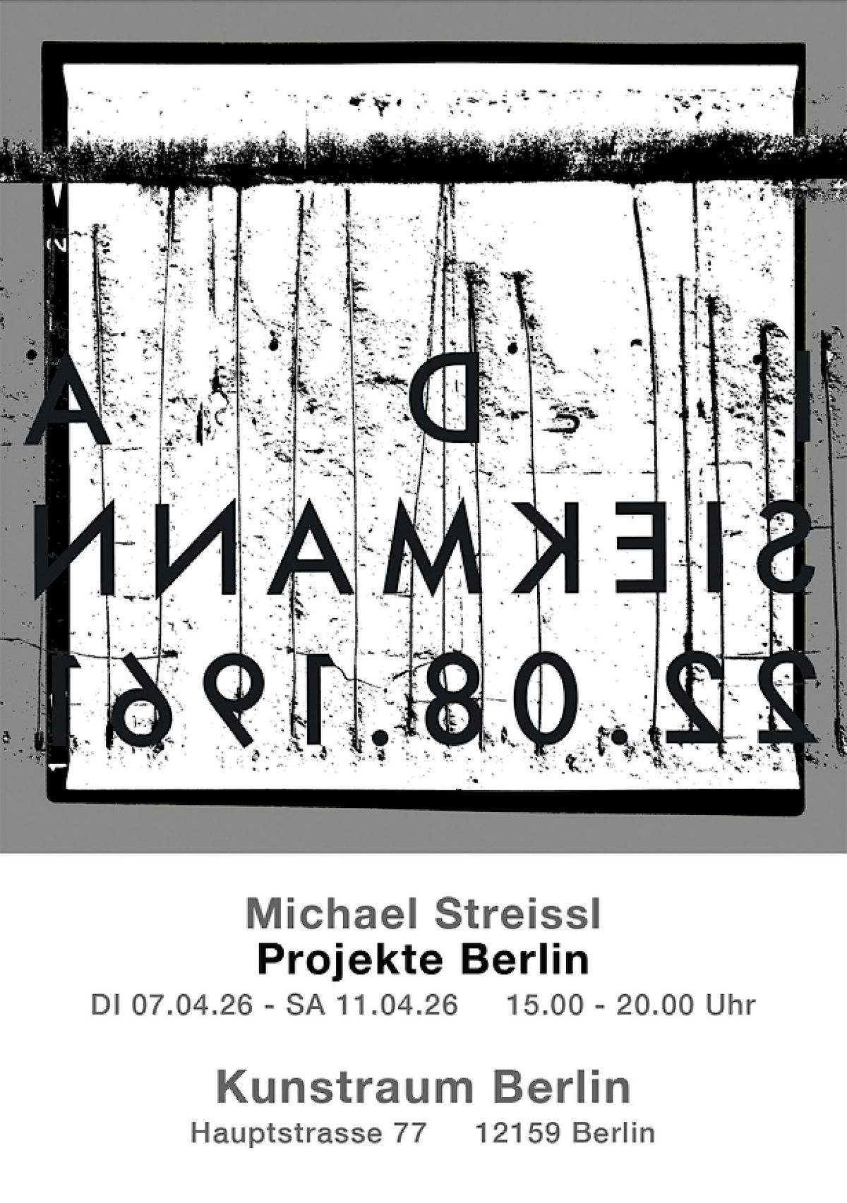 sie sind herzlich eingeladen zu dem Künstlergespräch mit Michael Streissl und zu der Präsentation seiner Arbeiten „Projekt Berliner Mauer“. Am Beispiel der Berliner Maueropfer und der Darstellung von Fakten stellt Michael Streissl unseren Umgang mit der Information in Frage. Welche Fakten und Informationen akzeptieren wir? Was war Fakt und was ist Fakt?