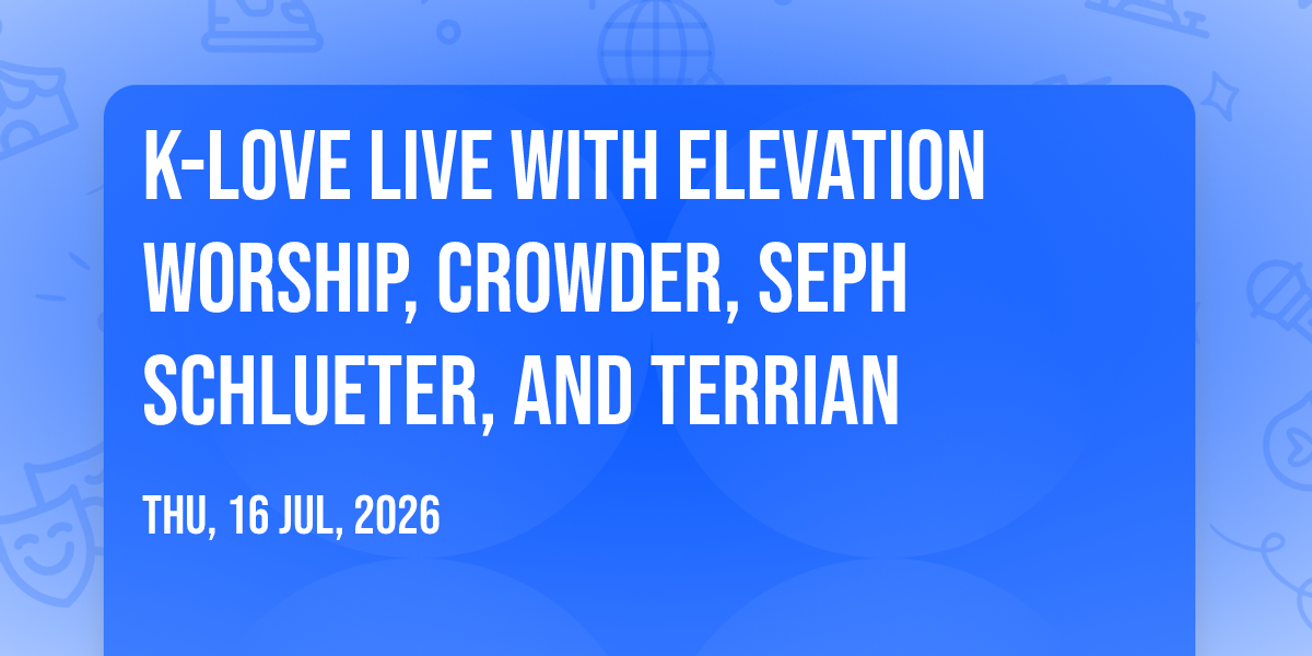 📍 Location: 34.1205, -118.297🌟 Journey into wonder at K-Love Live with Elevation Worship, Crowder, Seph Schlueter, and Terrian, where extraordinary experiences await around every corner! 🏛️ Set against the backdrop of The Greek Theatre - Los Angeles in dynamic Los Angeles, CA, this event promises to exceed all expectations. 📅 Join us on July 16th, 2026 at 02:00 AM for a celebration that combines innovation, entertainment, and community spirit in perfect harmony. ✨ There will be an atmosphere where memories are made and stories come alive, ensuring every guest experiences something truly remarkable. 🎊 This is more than just an event; it's a journey into the extraordinary!