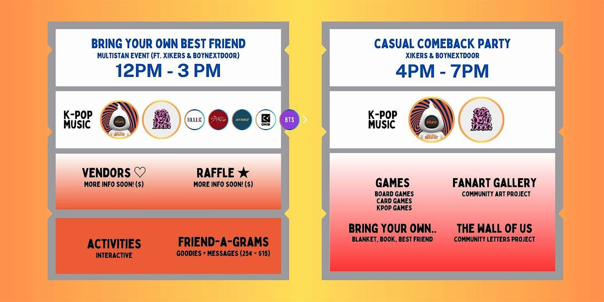 Join us for an unforgettable day at the NC Kpop Hive event—a celebration that goes beyond just a gathering! We're bringing together the local community, incredible artists, and the friendships that make it all possible. This event is designed to highlight the creativity and talent within our K-pop community, uniting us through a shared love of art, music, and the bonds of friendship.