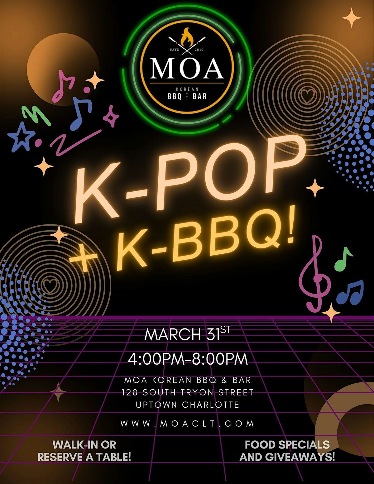 Join us for an epic evening combining your fave K-POP beats with delicious Korean BBQ right in the heart of Uptown Charlotte! Mingle with fellow fans, enjoy tasty bites, and dance to all the hits.
