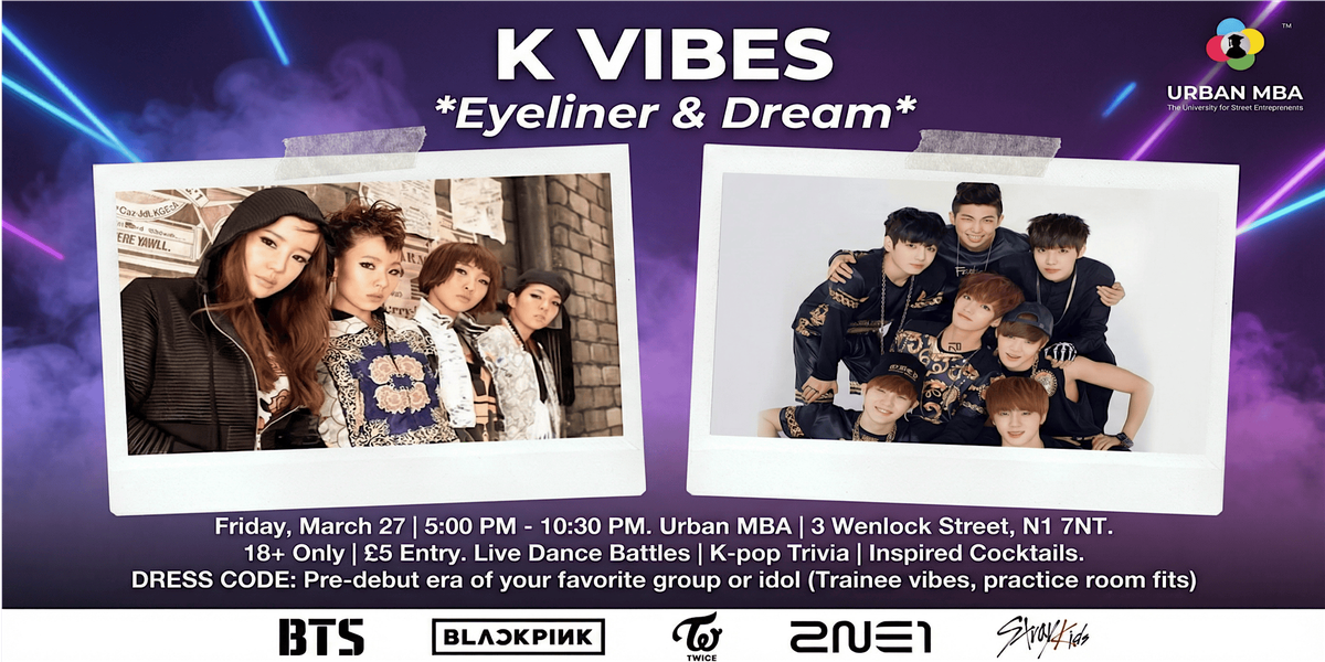 DRESS CODE: Pre-Debut Era Come dressed as your favourite group or idol during their pre-debut era. Think practice room fits, early debut concepts, trainee vibes, or that iconic pre-fame aesthetic. Get creative — the more authentic the look, the better. Standout outfits will be in the running for a special prize on the night.