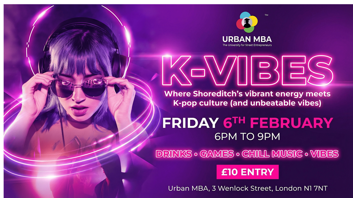 Join us for the K-VIBESS Pre-Party Event at Urban MBA – where Shoreditch's vibrant energy meets K-pop culture and unbeatable vibes, and your weekend officially begins.