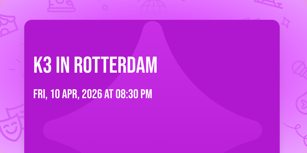 This is your chance to witness K3 live and in their element. Grab your tickets now for K3 in Rotterdam at Rotterdam Ahoy and be part of a night that everyone will be talking about. Don't wait—tickets are selling fast.