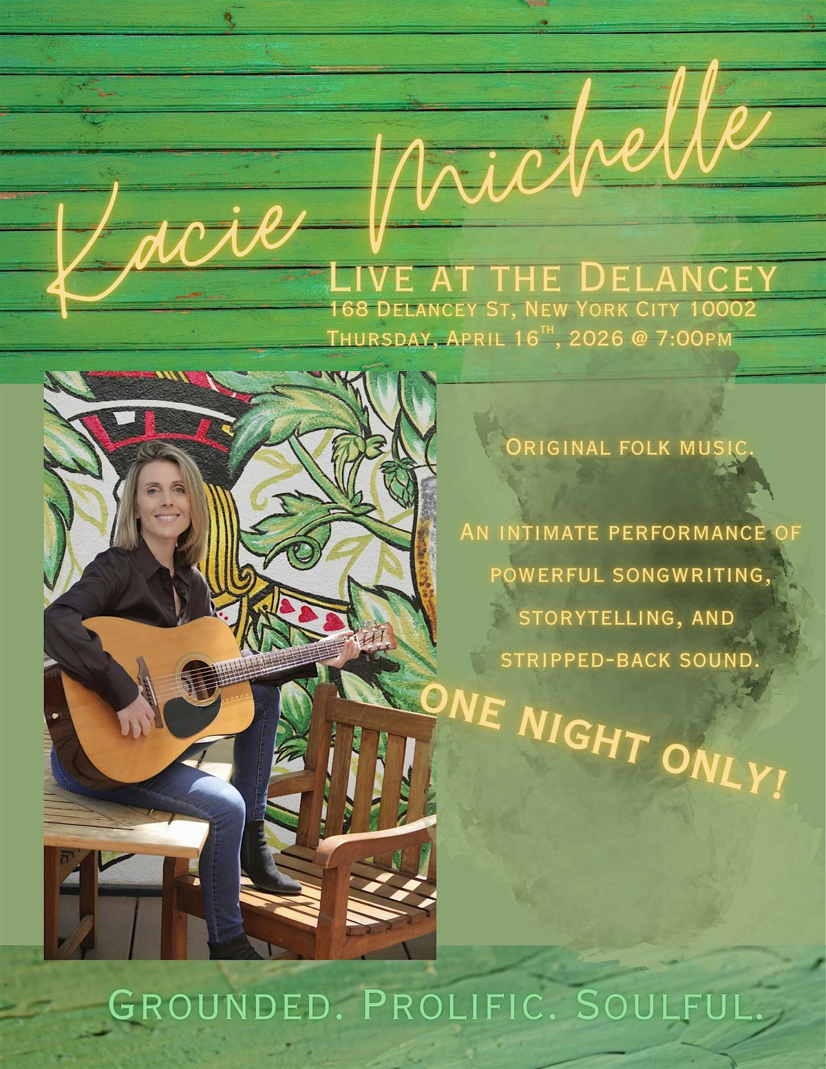 Join Kacie Michelle for an intimate night of folk music filled with honest storytelling, heartfelt lyrics, and a soulful voice that stays with you long after the last note. Performing live at The Delancey in NYC, this special evening is all about real songs, real emotion, and genuine connection.