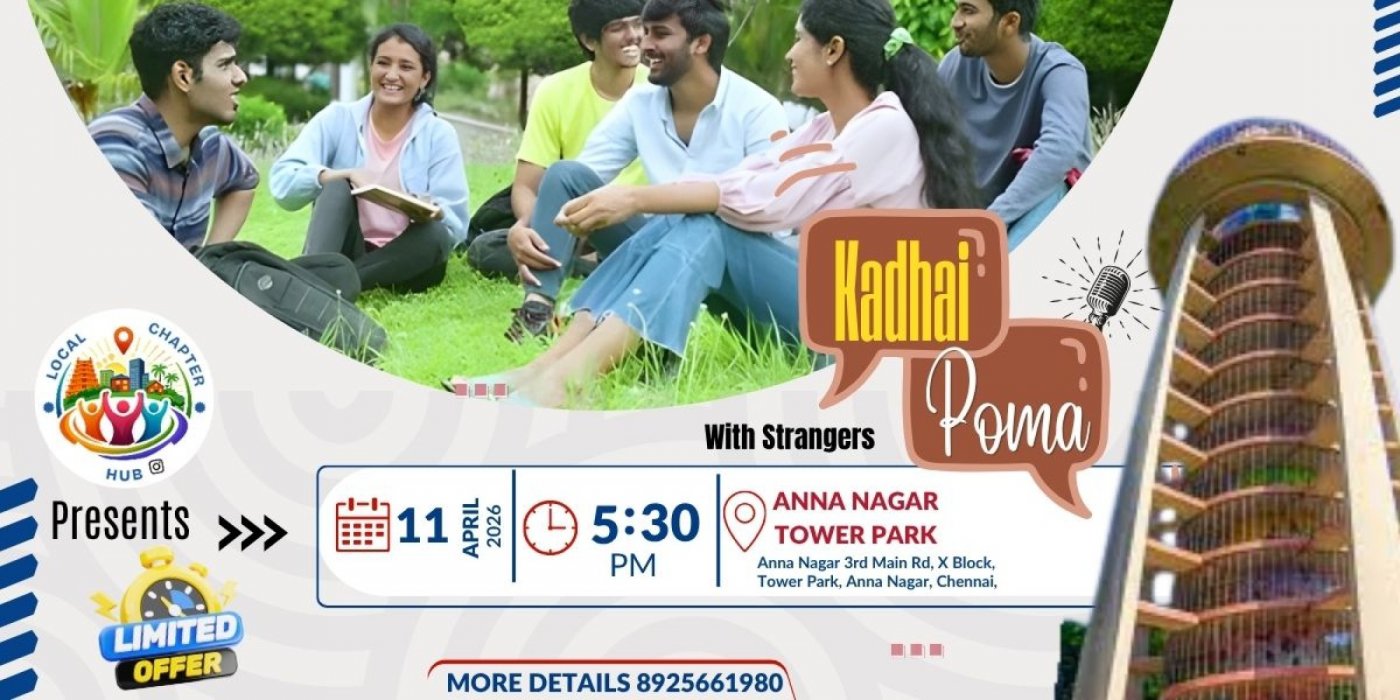 Discover stranger meetup Chennai vibes at Kadhai Poma! Connect with new faces, share kadhai stories, and make friends at Tower Park, Anna Nagar. Local Chapter Hub hosts this fun meet strangers event on April 11, 2026, 5:30 PM – safe, casual, perfect for young Chennaiites!