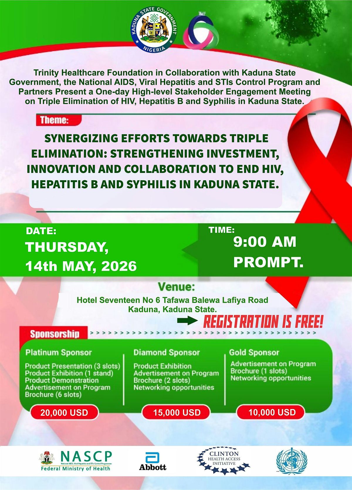This meeting will convene key stakeholders in Kaduna State Healthcare Sector to discuss Triple Elimination of HIV, Hepatitis B and Syphilis.