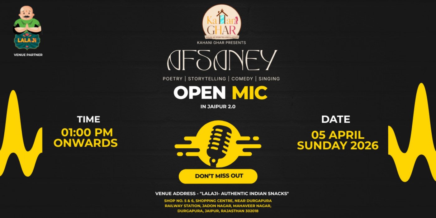 Kahani Ghar lekar aa raha hai ek khoobsurat mehfil jahan lafzon, jazbaaton aur kahaniyon ka jadoo stage par zinda hoga. AFSANEY – Open Mic Jaipur 2.0 ek aisa platform hai jahan naye aur experienced artists apni kala ko audience ke saamne pesh kar sakte hain.