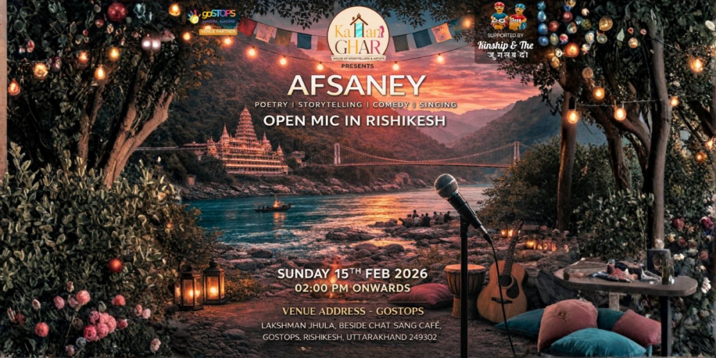 Shabdon, jazbaaton aur awaaz ki mehfil taiyaar hai Rishikesh ke sukoon bhare mahaul mein. AFSANEY ek aisa open mic hai jahan poetry, storytelling, comedy aur singing milkar kahaniyon ko zinda kar dete hain. Agar aap apni baat, apni kahani ya apni kala logon tak pahunchana chahte ho – ya bas ek khoobsurat shaam ka hissa banna chahte ho – toh yeh event aapke liye hai.