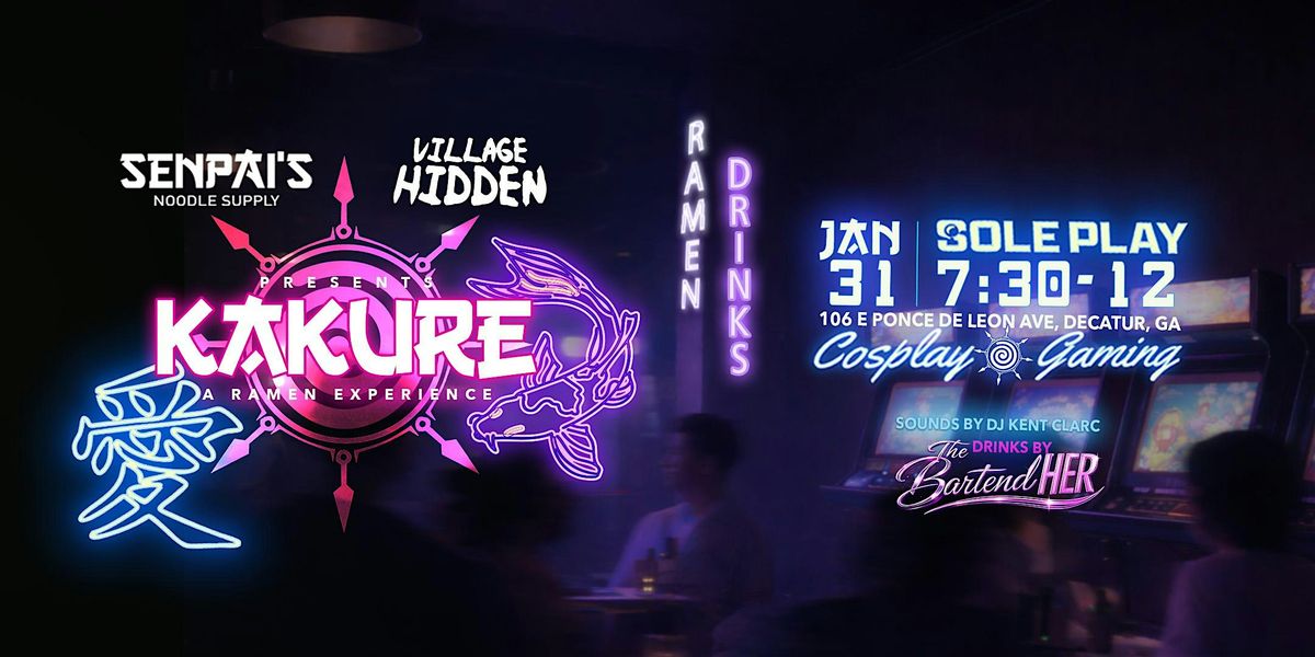 Step into the KAKURE โ a popup late-night, anime-inspired ramen lounge blending Japanese R&B, gaming, streetwear + cosplay culture, and the energy of Atlantaโs hidden otaku scene.