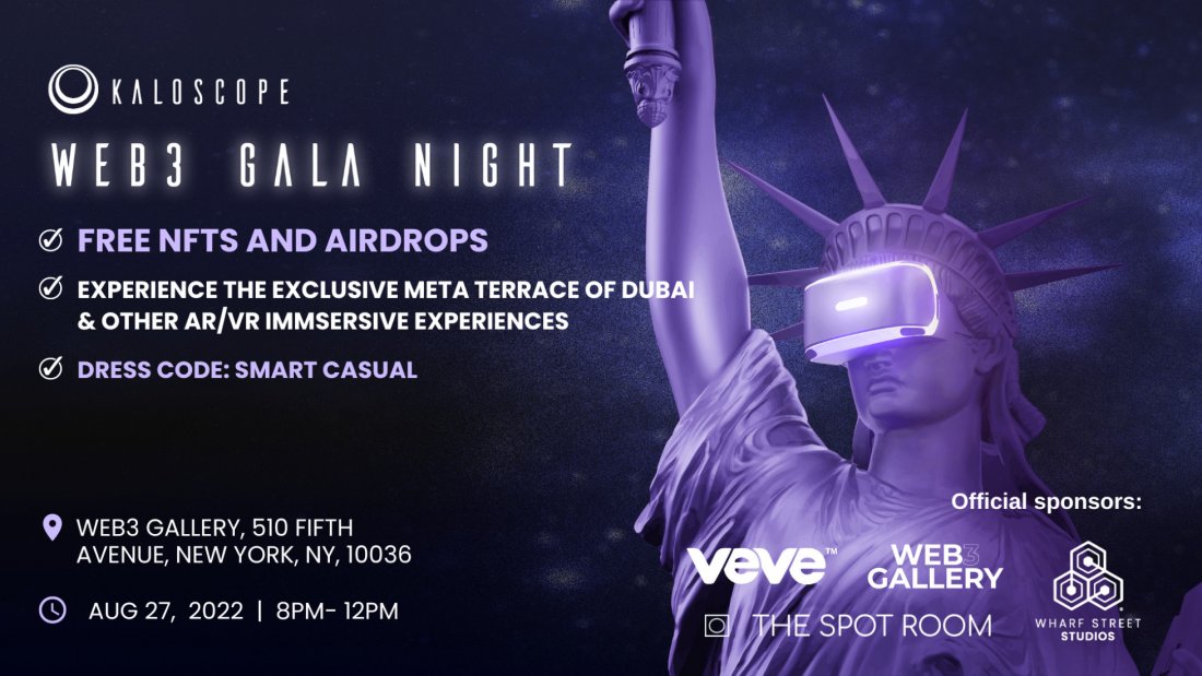 In collaboration at the exclusive Web3 Gallery a hub for Web3 on 5th Avenue New York it promises to be a magical evening as one can have the exclusive first-hand immersive experience of Dubai’s Meta Terrace in VR connect and converse with NFT creators block chain experts entrepreneurs Web3 Start-Up Founders investors engineers and influencers. A deep educational dive into the Web3 community will see guest speakers panel discussions and networking over drinks nibbles and music. Best of all there will be free NFTs and air drops throughout from VEVE Epiko Regal Kaloscope and other well-known NFT apps!