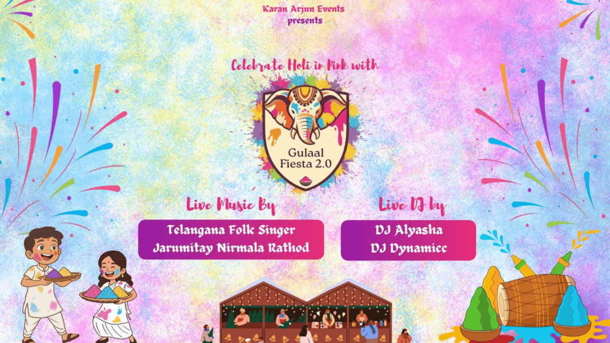 Are you ready for the CRAZIEST Holi party of 2026? 🌈💥💗 Gulaal Fiesta 2.0 is back!🎤 Live Folk 🔥🎧 Mass DJ 🎶💦 Rain Dance🎉 Foam Party🍴 Food + Madness 😍🎈 Balloon Fight📸 Photo Booth🌈 Organic Colors🥁 Congo Band✨ Huge Production🎁 Many more surprises are awaiting for youuuu! 🤩🎊📍 BD Reddy GardensLet’a Make It LEGENDARY this year 💥🌈🔥 !!