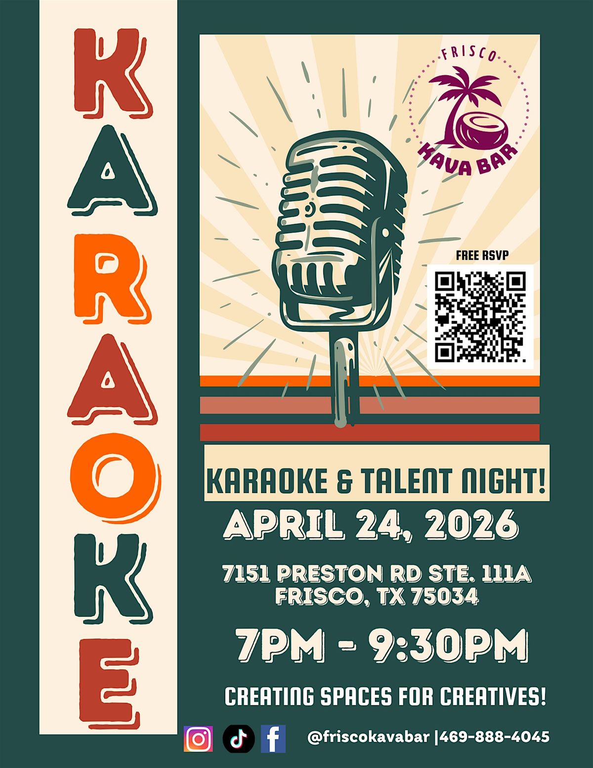 Come ready to sing, vibe, connect, and have fun—this is your night to shine at Frisco Kava Bar.