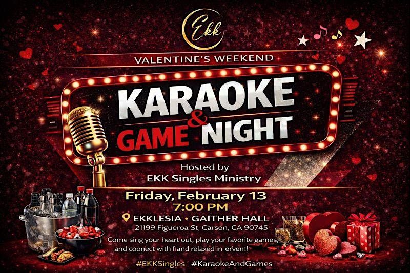 The Ekklesia of Christ Apostolic Singles Ministry invites you to a special evening of fellowship at Gaither Hall on Friday, February 13 at 7:00 PM.