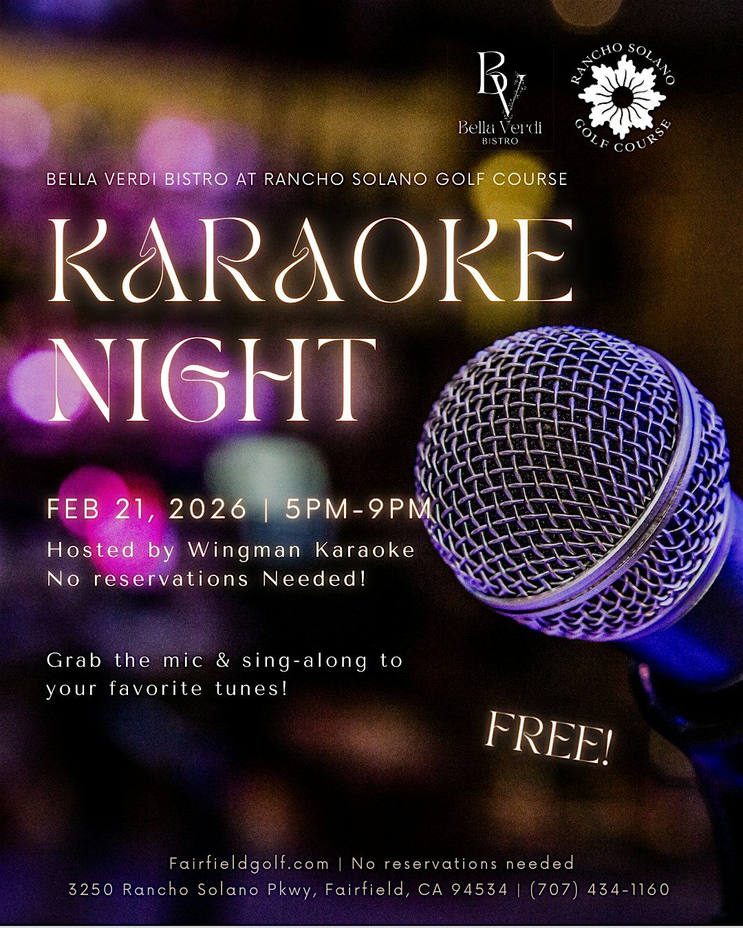 Grab the mic and sing along to your favorite tunes! Join the fun at Bella Verdi Bistro at Rancho Solano Golf Course. All ages are welcome!