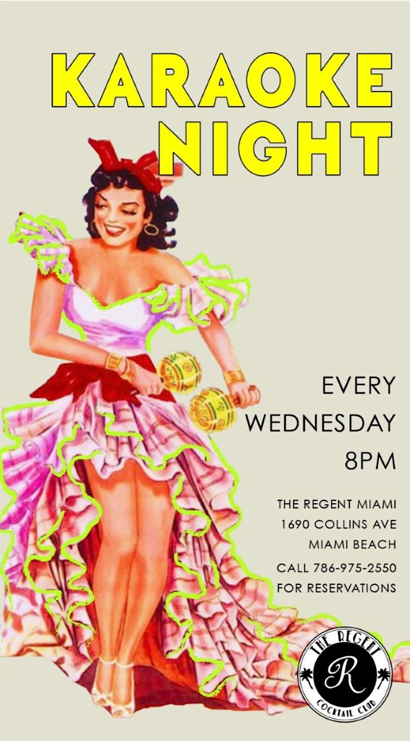 The Regent Cocktail Club in Miami is celebrating the middle of the week by hosting a Karaoke Night every Wednesday at 8 p.m. The beloved cocktail club is located in the Gale South Beach behind the host stand of Dolce Italian Restaurant, and upon following the neon sign, the patrons are greeted with a glamorous, retro, Havana-inspired atmosphere.
