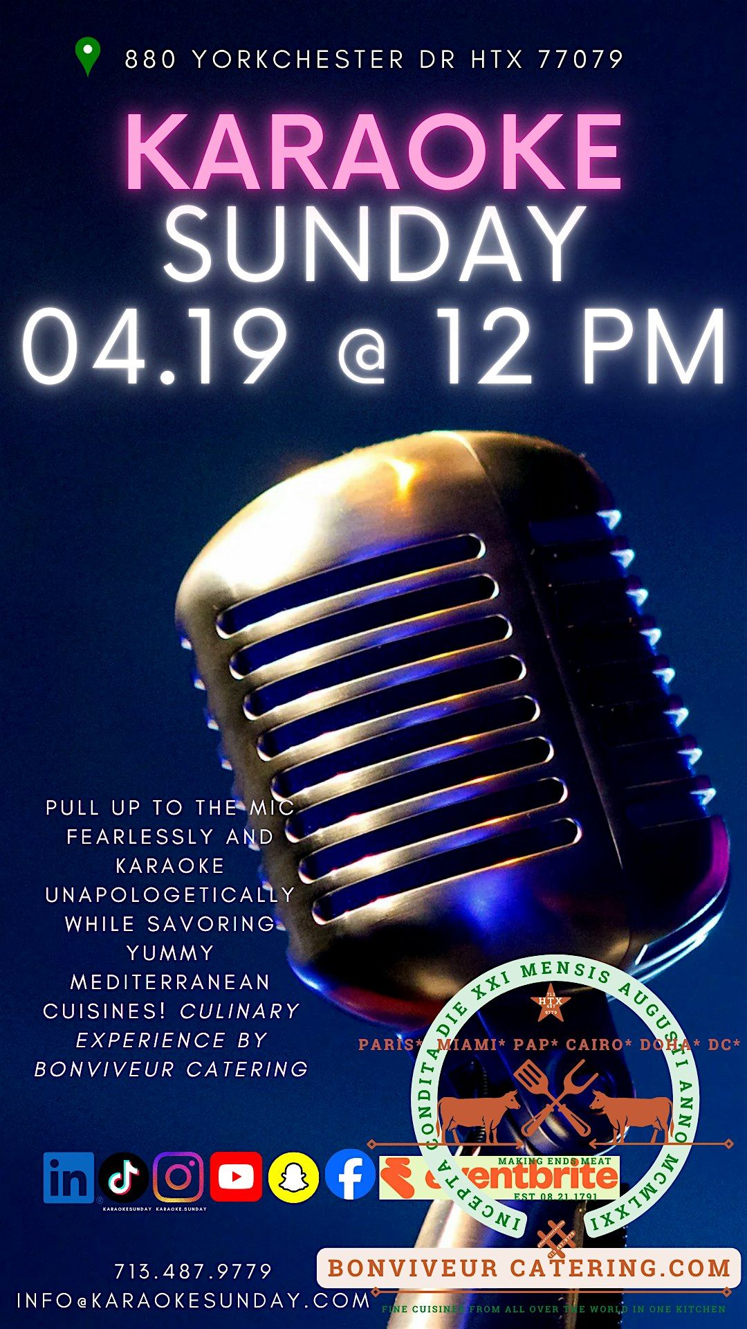 Join us in person for a super fun Karaoke Sunday where you can sing your heart out or just cheer on your friends! Whether you're a shower singer or a stage pro, it's all about good vibes, great tunes and yummy Mediterannean foods. Bring your energy and your favorite songs — let's make Sunday the highlight of your week!