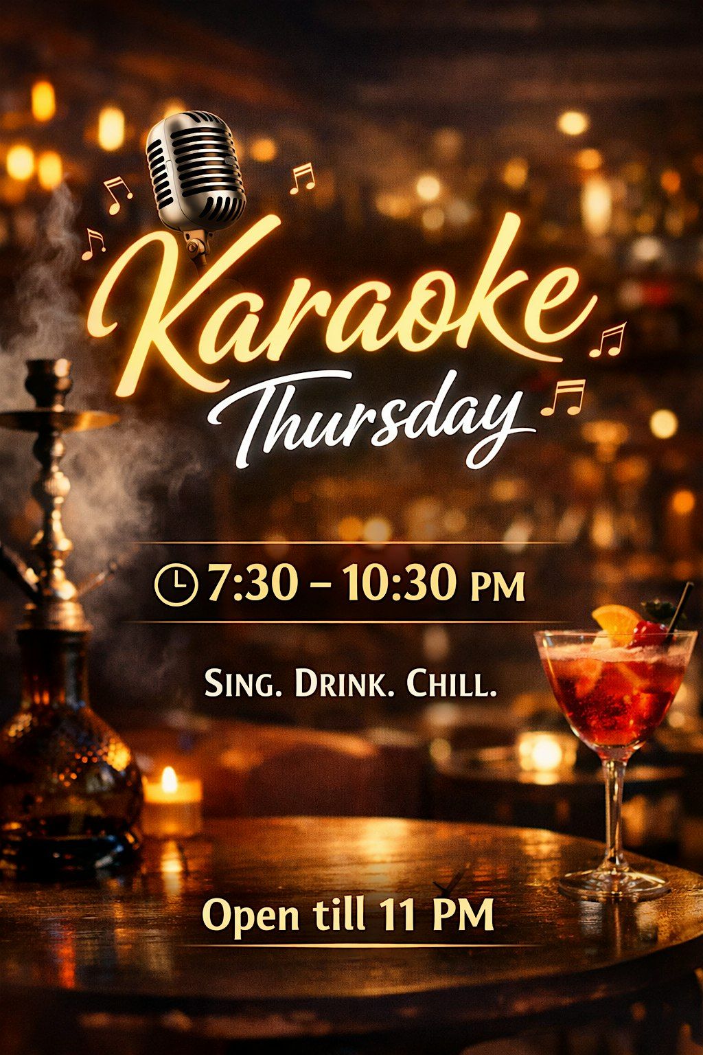 Get ready to rock the mic at our Karaoke Thursday night at Illuminati Bar & Shisha Lounge! 🎶