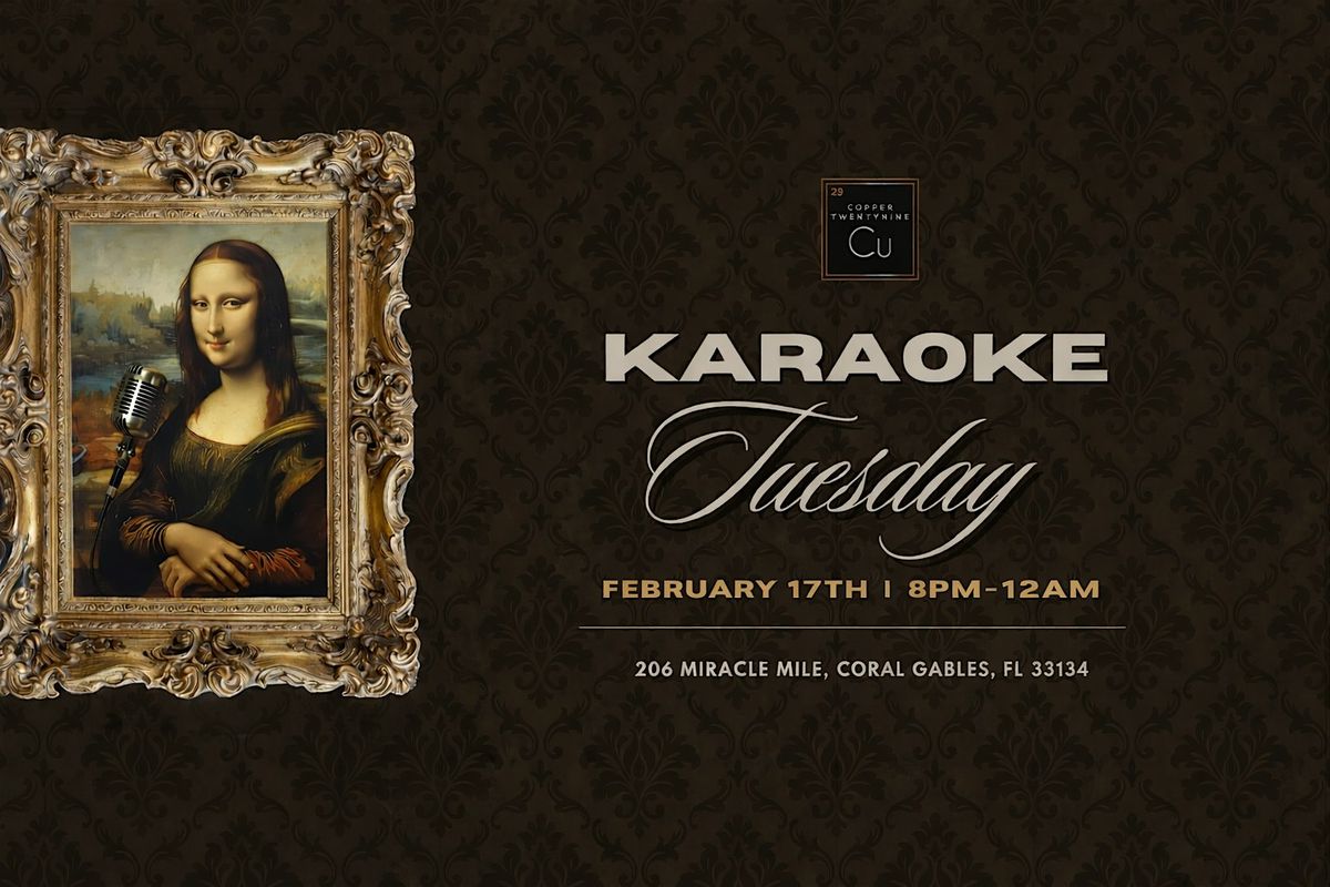 Turn your Tuesday nights into something worth looking forward to! Join us every Tuesday from 8 PM to 12 AM for Karaoke Tuesdays at Copper 29 Bar in Coral Gables, featuring crowd-favorite songs, craft cocktails, and a lively late-night bar atmosphere.
