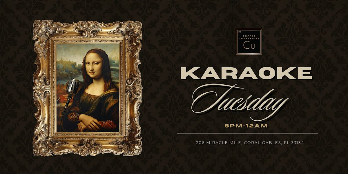 Turn your Tuesday nights into something worth looking forward to! Join us every Tuesday from 8 PM to 12 AM for Karaoke Tuesdays at Copper 29 Bar in Coral Gables, featuring crowd-favorite songs, craft cocktails, and a lively late-night bar atmosphere.