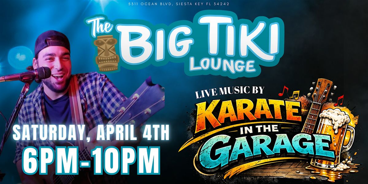 Get ready for a high-energy night of live music as Karate in the Garage takes the stage at The Big Tiki Lounge on Siesta Key!