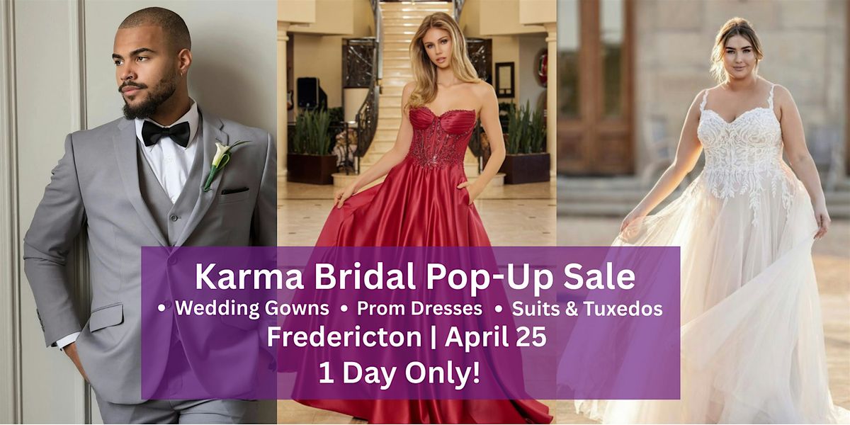 Join Karma Bridal & Formal for a 1-Day Pop-Up Wedding, Prom, and Suit & Tuxedo in Fredericton at Crowne Plaza.