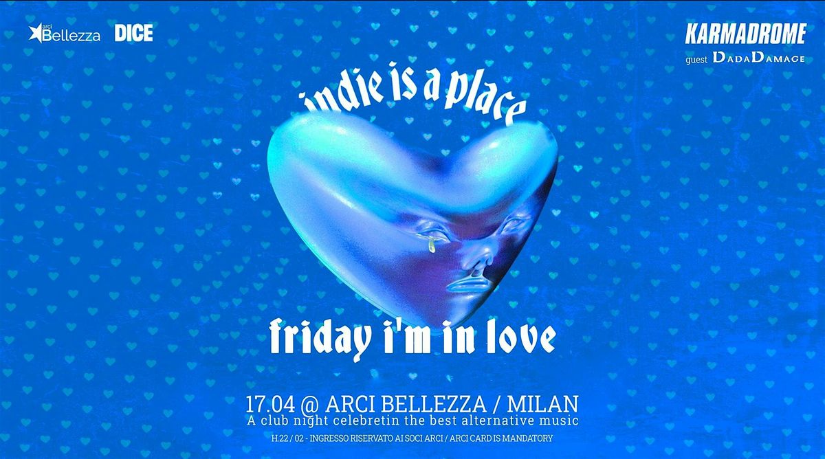 Karmadrome Γ¨ una storica serata Indie-Disco milanese attiva da oltre 30 anni, che unisce sonoritΓ anni '80, '90 e oltre (New Wave, Post-Punk, Gothic-Rock, Britpop, Alternative Rock, Indie Sleaze, Electronica e Synthpop). "Indie is a Place" Γ¨ il nostro nuovo evento che punta a recuperare il significato del termine Indie, riportandolo alla sua autenticitΓ . Ci vediamo sul dancefloor! > DJs: Tommaso Toma e Carlo Villa + Guest: Dada Damage: Domiziana Bani e Alexia Kaswalder DJset