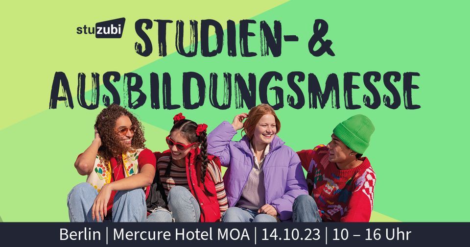 Antworten darauf bietet die Schülermesse "Stuzubi", die am Samstag, den 14. Oktober 2023, von 10-16 Uhr zum 19. Mal in Berlin stattfindet. Im Mercure Hotel MOA kannst du dich bei Ausstellern und Hochschulen aller Branchen und Fachrichtungen über deine berufliche Zukunft informieren.