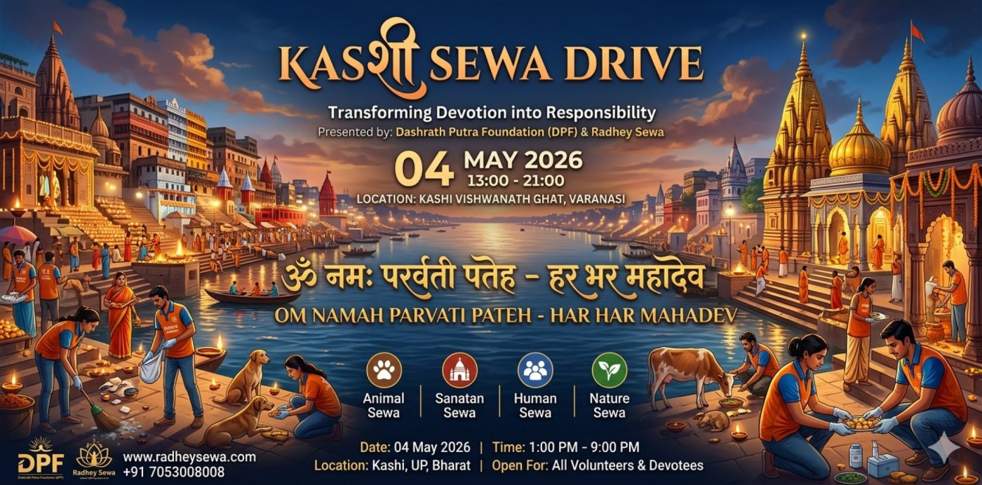 On 04 May 2026, the Dashrath Putra Foundation (DPF) – Radhey Sewa – The Street Defenders invites the youth, professionals, and devotees of Kashi to join a movement that transforms spiritual energy into selfless action.