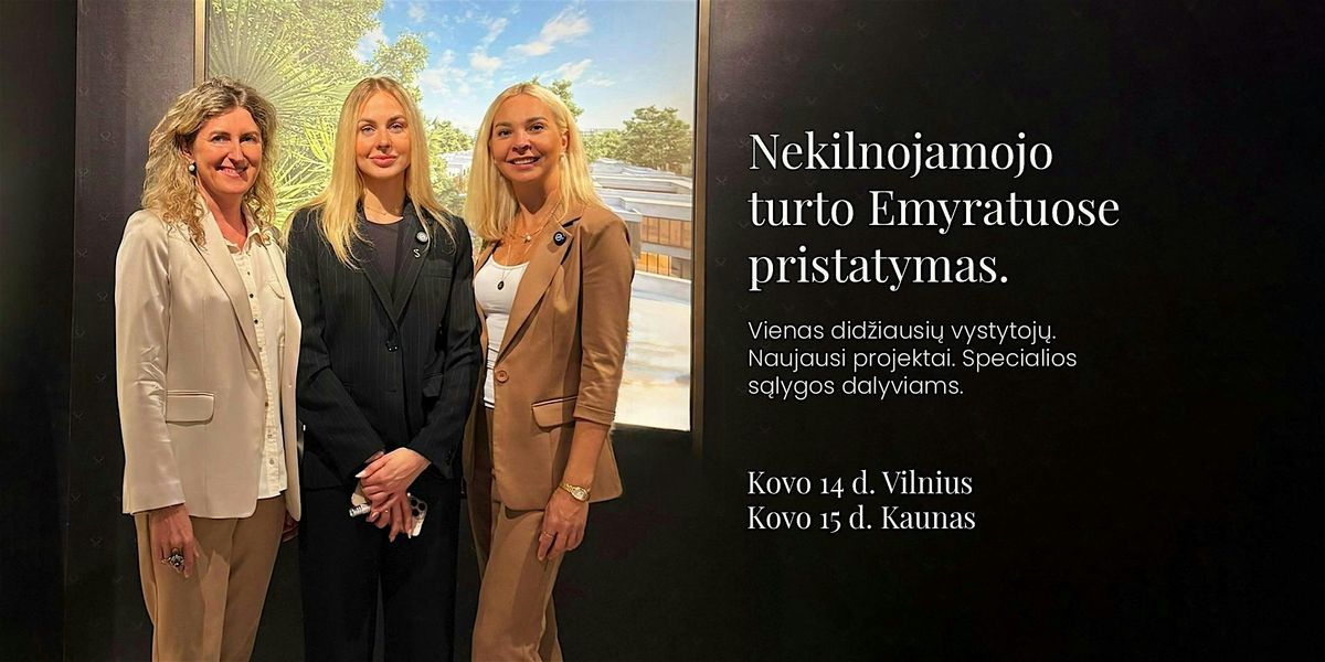 Kviečiame į nemokamą renginį, skirtą pristatyti nekilnojamo turto investavimo galimybes Emyratuose. Dalyviai susipažins su vieno iš didžiausių vystytojų projektais, sužinos apie investavimo sąlygas Lietuvos investuotojams ir galės užduoti klausimus ekspertams, dirbantiems tiesiogiai su vystytoju.