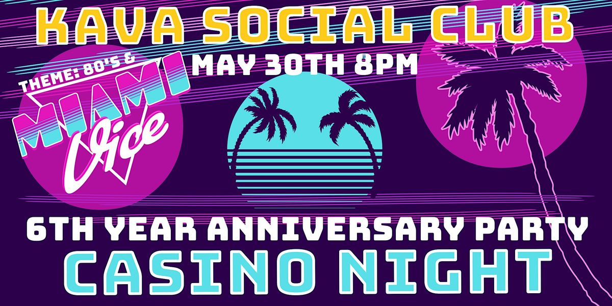 Get ready to celebrate 6 awesome years with us at the Kava Social Club! Dive into the fun with an 80's Casino Night vibe.About this Event