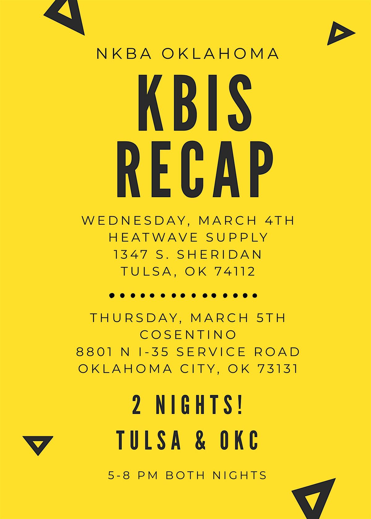 We are hosting this event in both Tulsa and Oklahoma City again this year on back-to-back nights for the convenience of our membership.