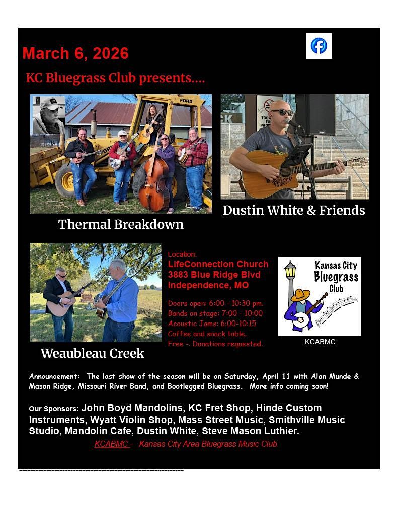 Bands: Thermal Breakdown, Dustin White & Friends, Weaubleau Creek. Five jam rooms!