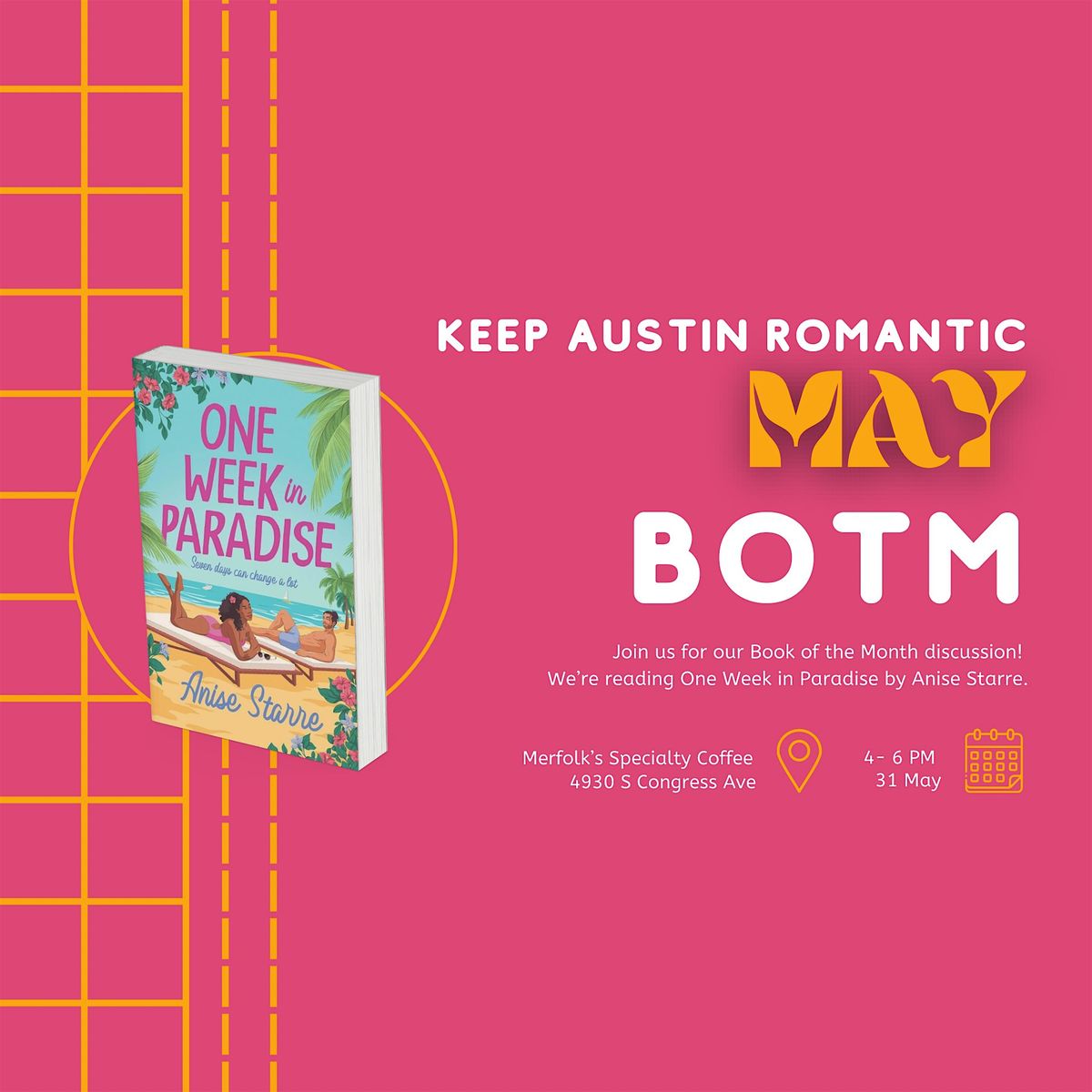 Hey there, romance lovers! May’s flirty vacay theme brings vacation romance with our BOTM pick: One Week in Paradise by Anise Starre!