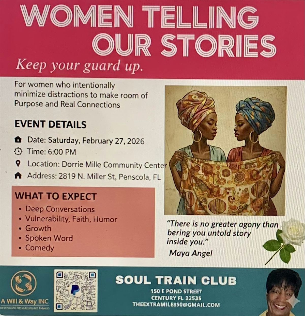 Women gather to release the weeks’ stress through humor, music, deep conversations and inspiration. Friday, Feb. 27, 2026 @ 6:00pm,