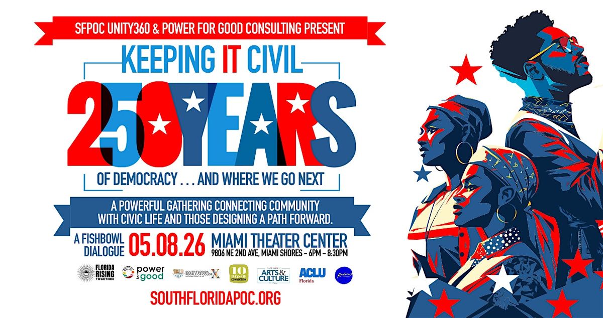 An opportunity to contend with the history and current realities of civil society within the 250-year arc. A call-in to affirm the power of a multiracial democracy in a city like Miami: majority minority, immigrant-powered, working class.