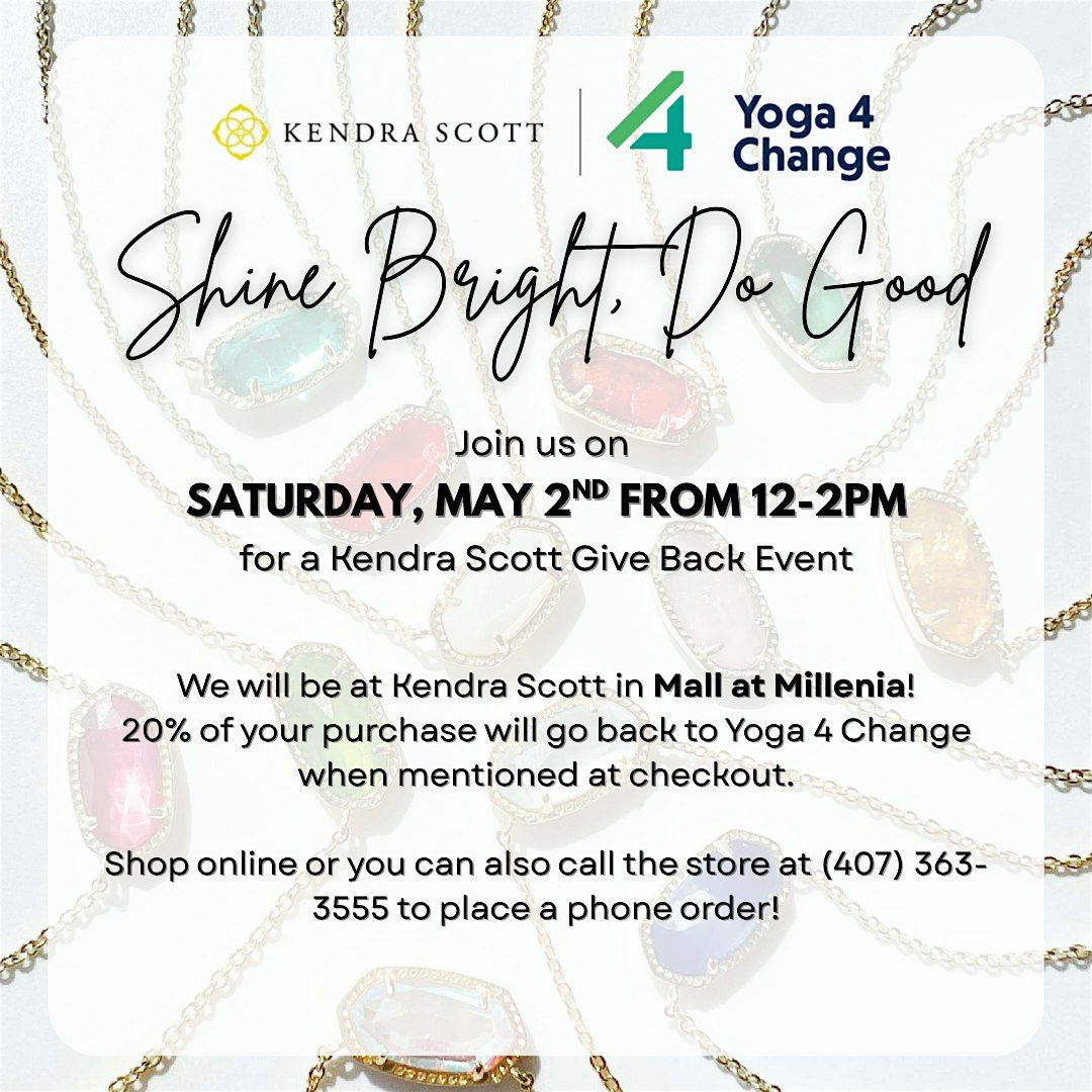Come join us for a special event at Kendra Scott in Orlando where we will be hosting a 'sip & shop' mixer to support Yoga 4 Change, a non-profit organization that offers trauma-infrmed yoga and mindfuless programs to underserved communities. It's a great opportunity to give back just in time for Mother's Day.